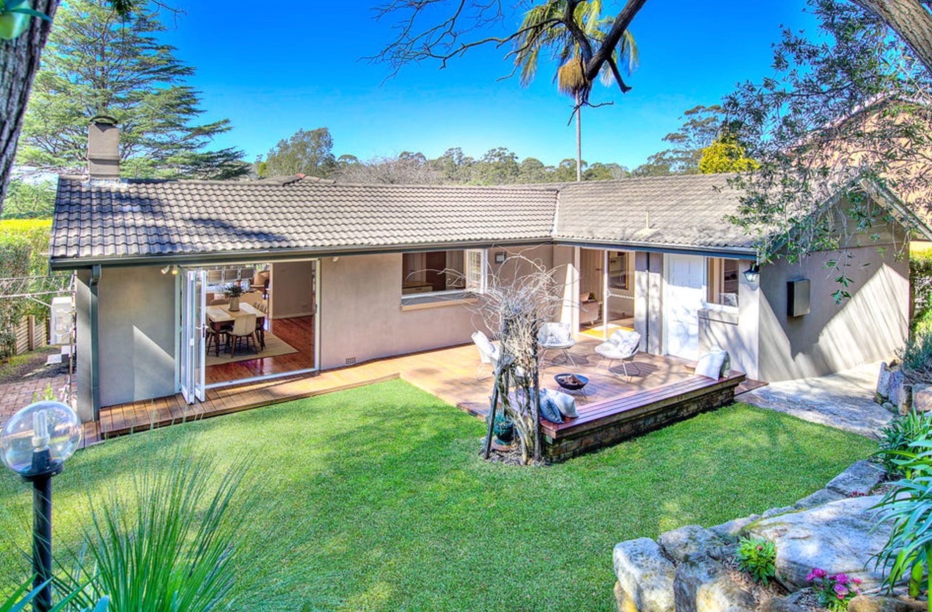 -Banks of bi-fold doors and windows from kitchen to covered front alfresco terrace and back deck