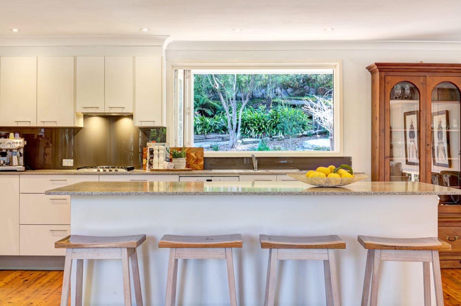 -Central island bench with a breakfast bar, European appliances