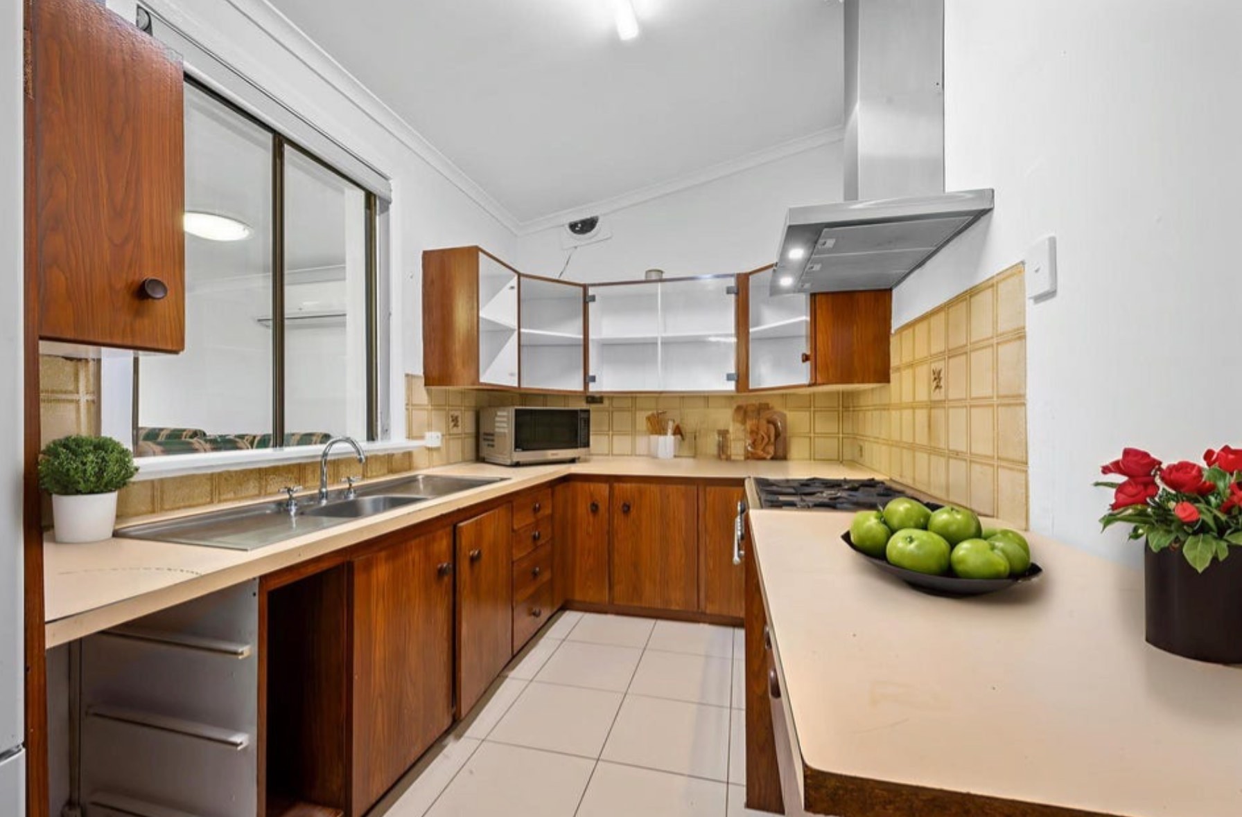 * Galley style timber kitchen with gas cooking