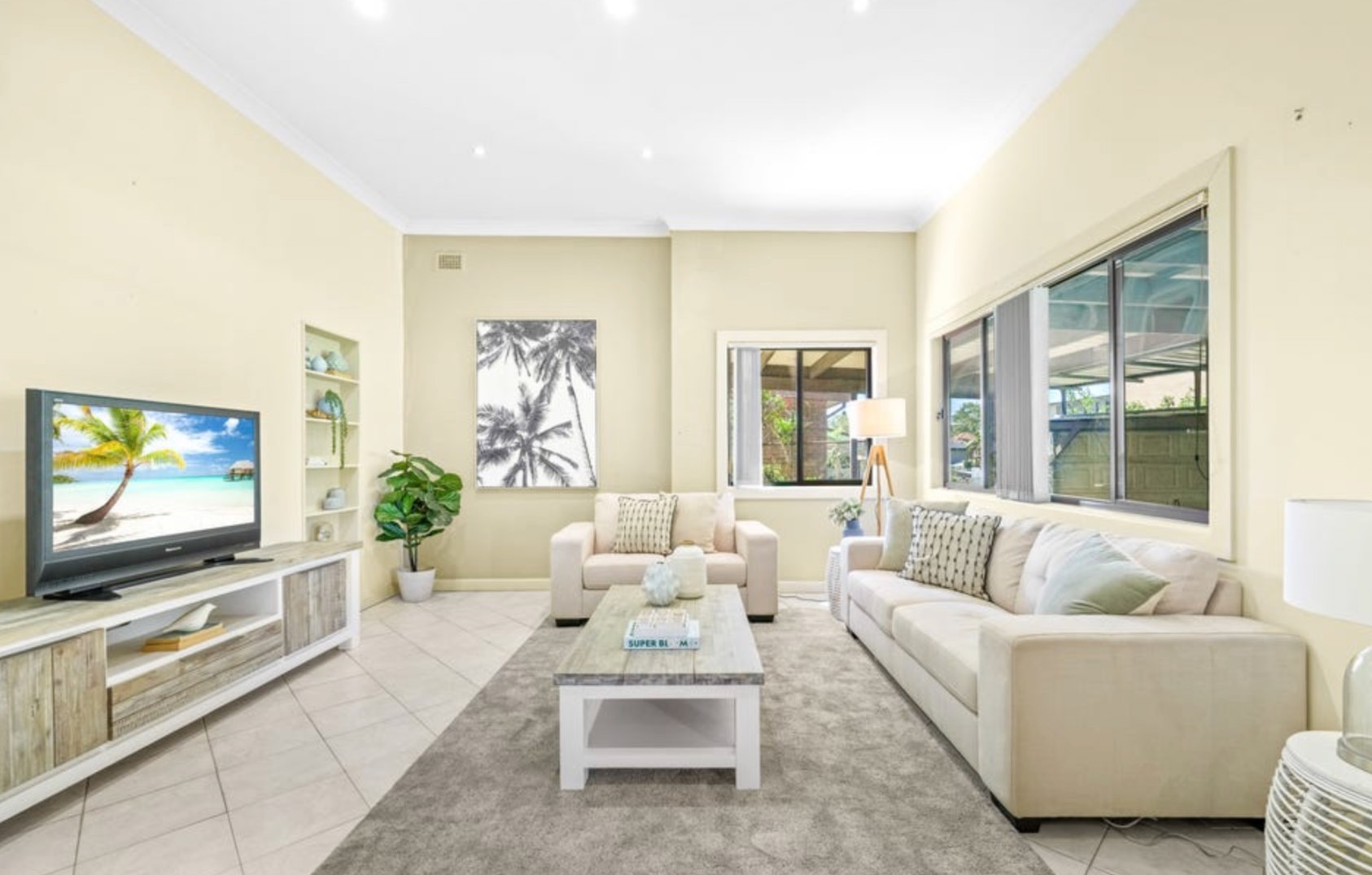 - Three bedrooms with built-in robes, lounge flexible as fourth