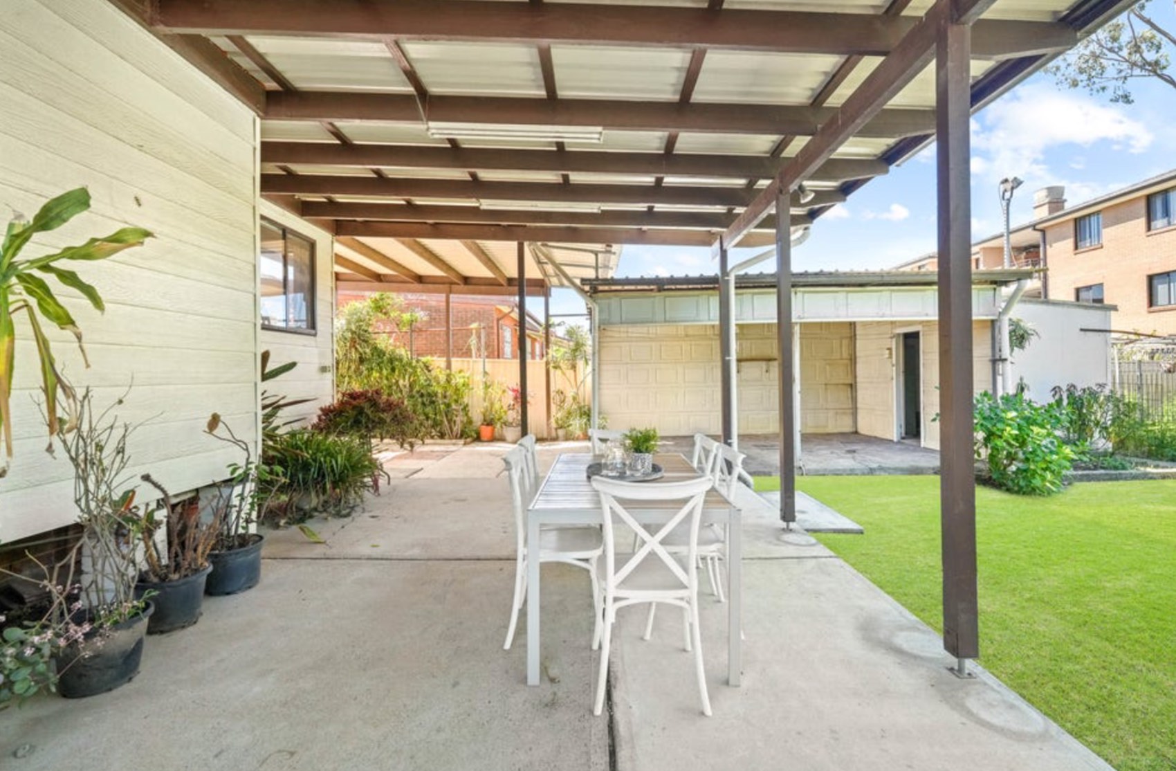 - Huge covered patio, lush gardens and established fruit trees