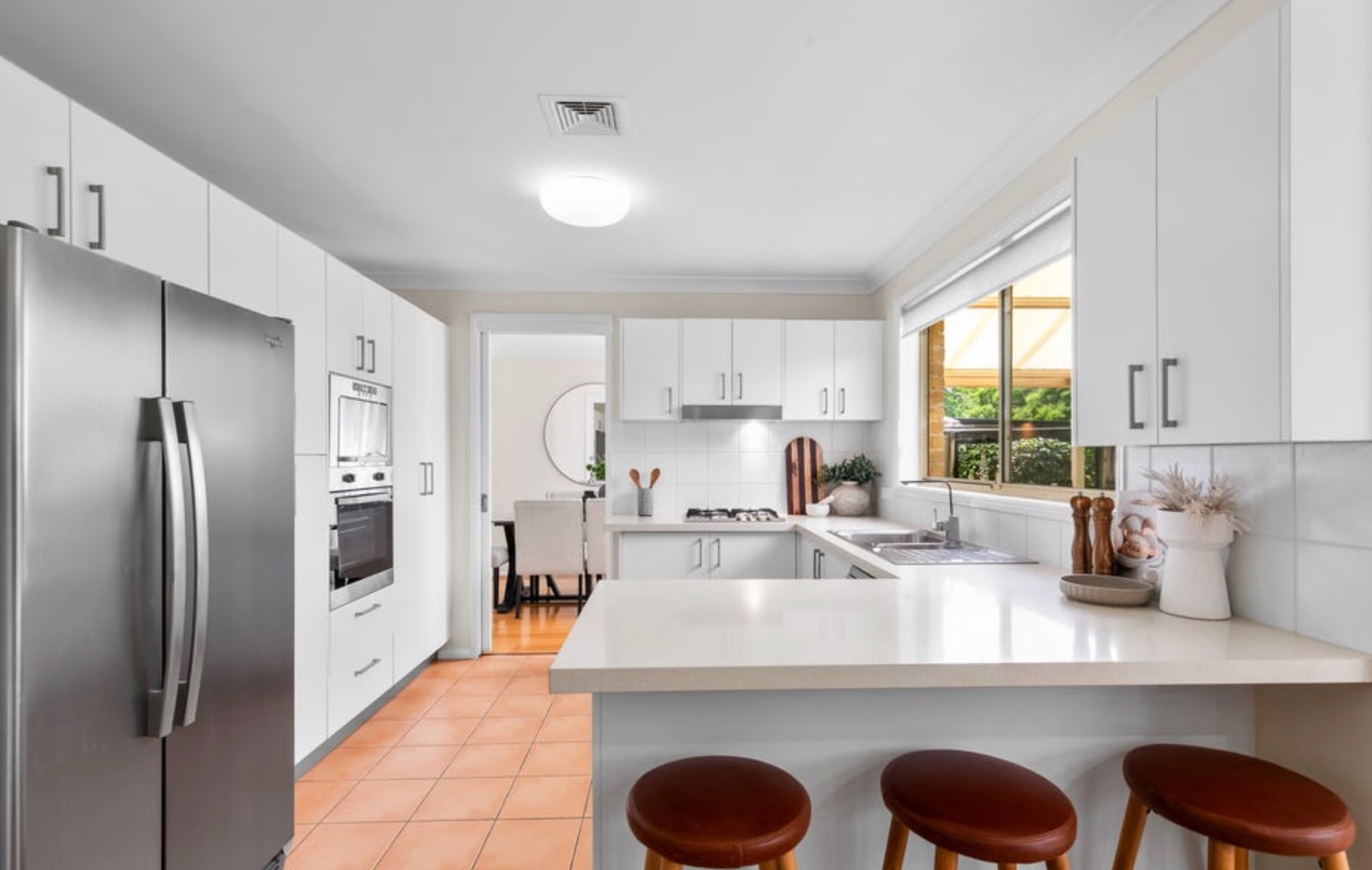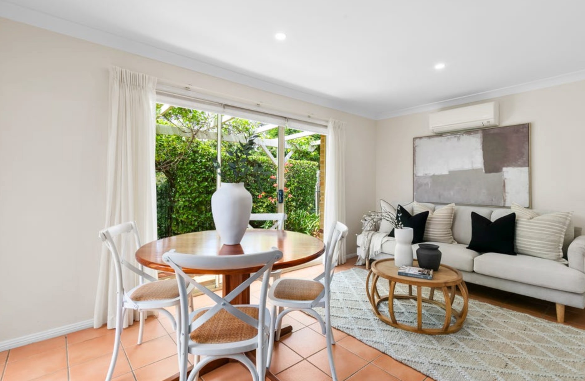 - Separate living and dining zones, tiled family/meals area